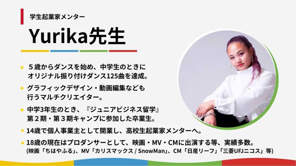 Yurikaさんのような先輩のメンターたちが、あなたのお子様の「好き」を「生きる力」に変えるお手伝いをいたします。