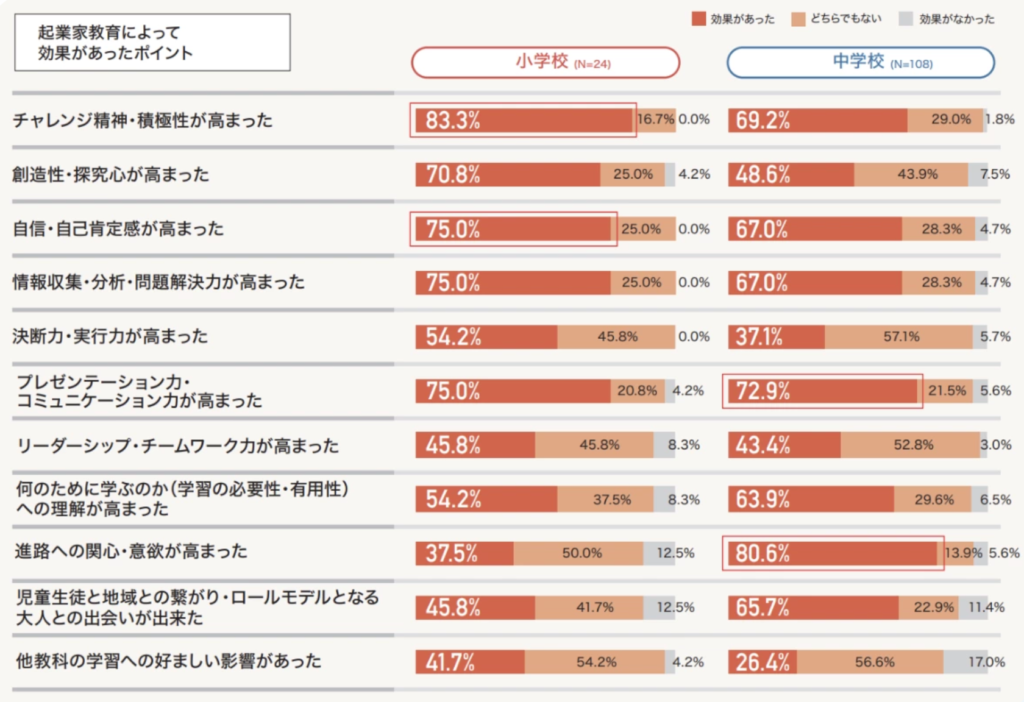 実は、文部科学省の調査でも、起業家教育を受けた子どもたちには以下のような変化が見られることが分かっています。